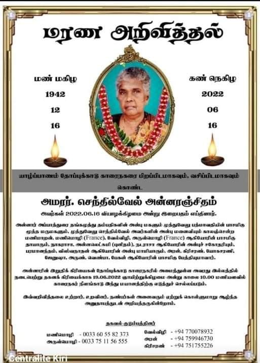 HomeMemorial Dayசெந்தில்வேல் அன்னரஞ்சிதம் 16-06-2022 Posted in Funeral Memorial Day Thoppukkadu செந்தில்வேல் அன்னரஞ்சிதம் 16-06-2022 Posted on June 16, 2022November 3, 2025 by Programs Thoppukkadu