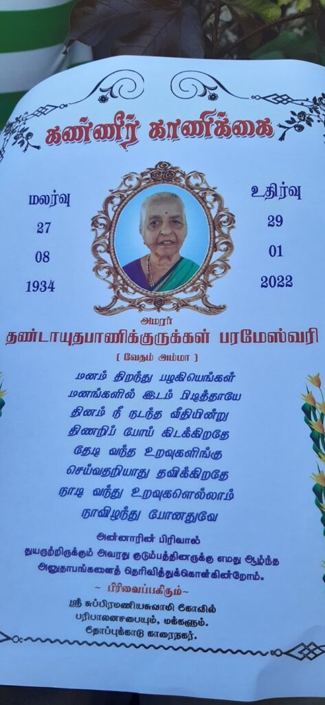 HomeMemorial Dayதண்டாயுதபாணிக் குருக்கள் பரமேஸ்வரி 29-01-2022 Posted in Funeral Memorial Day Thoppukkadu தண்டாயுதபாணிக் குருக்கள் பரமேஸ்வரி 29-01-2022 Posted on January 29, 2022November 3, 2025 by Programs Thoppukkadu