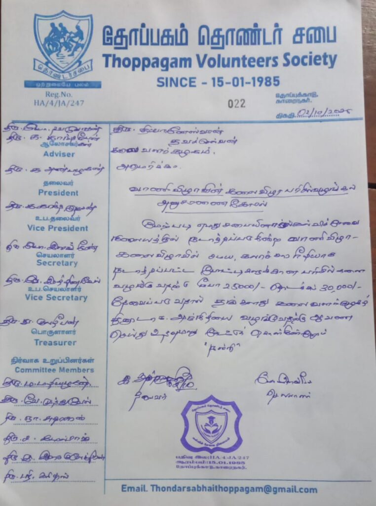 வாணி விழா பரிசளிப்பு உதவி – கலை வளர் கழகம் (அமெரிக்கா)